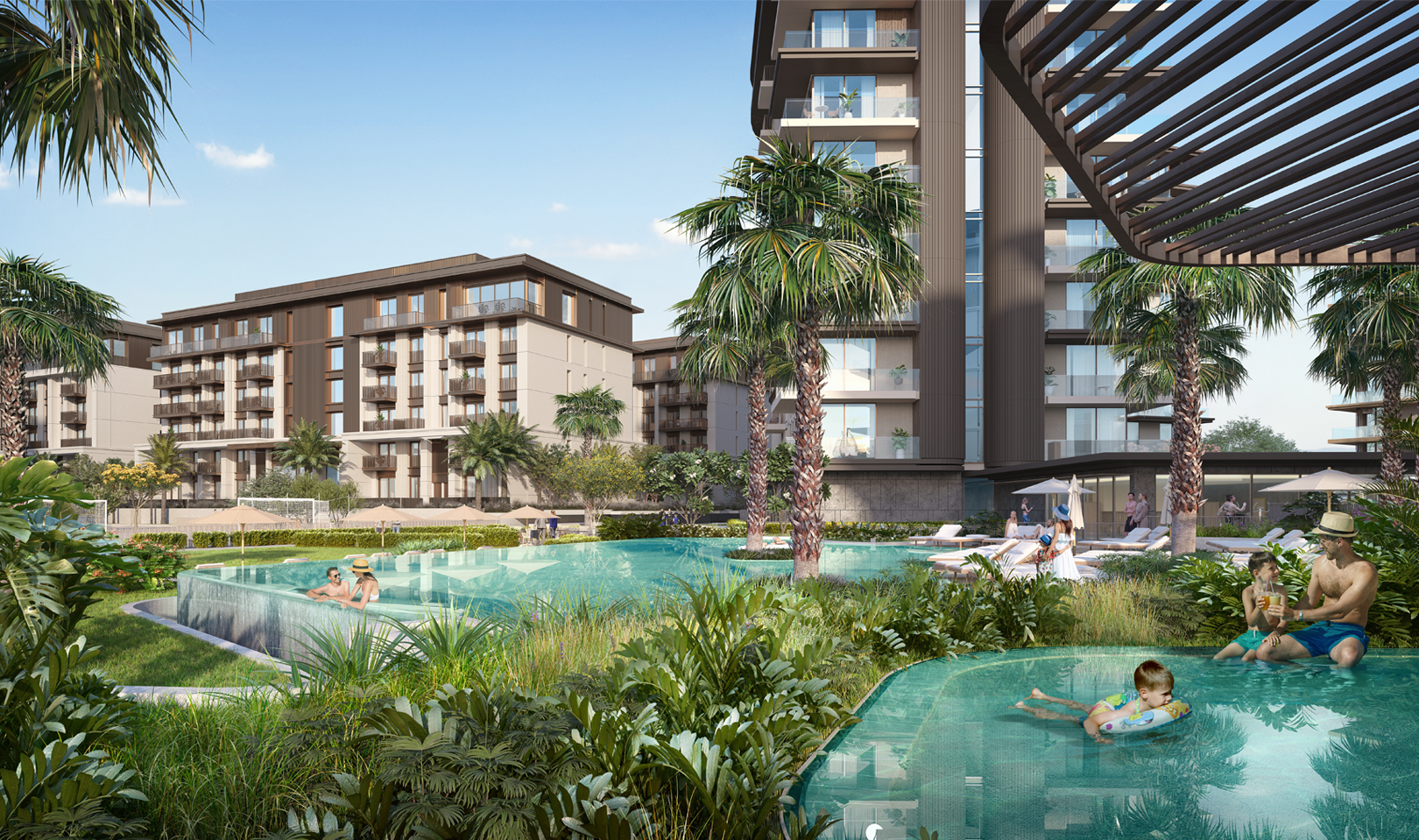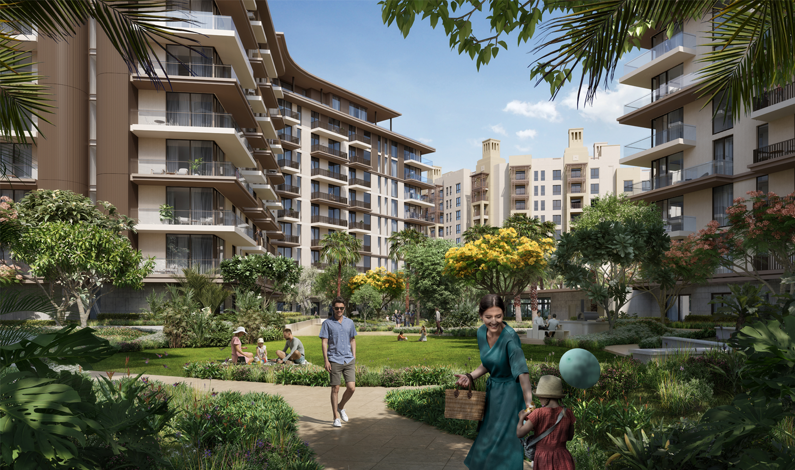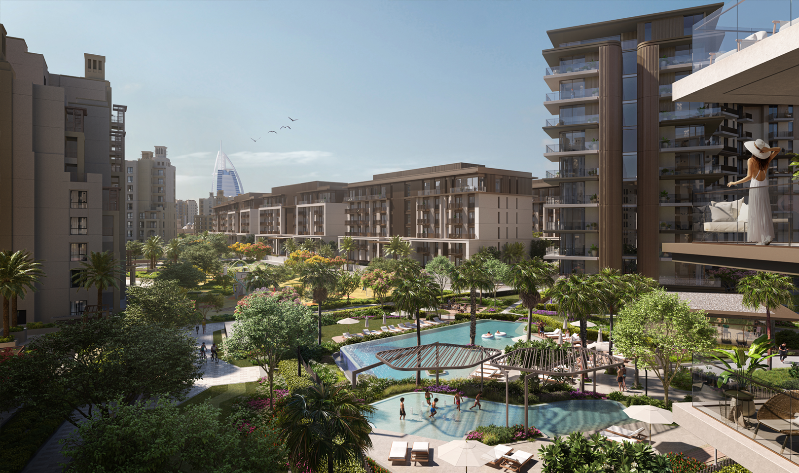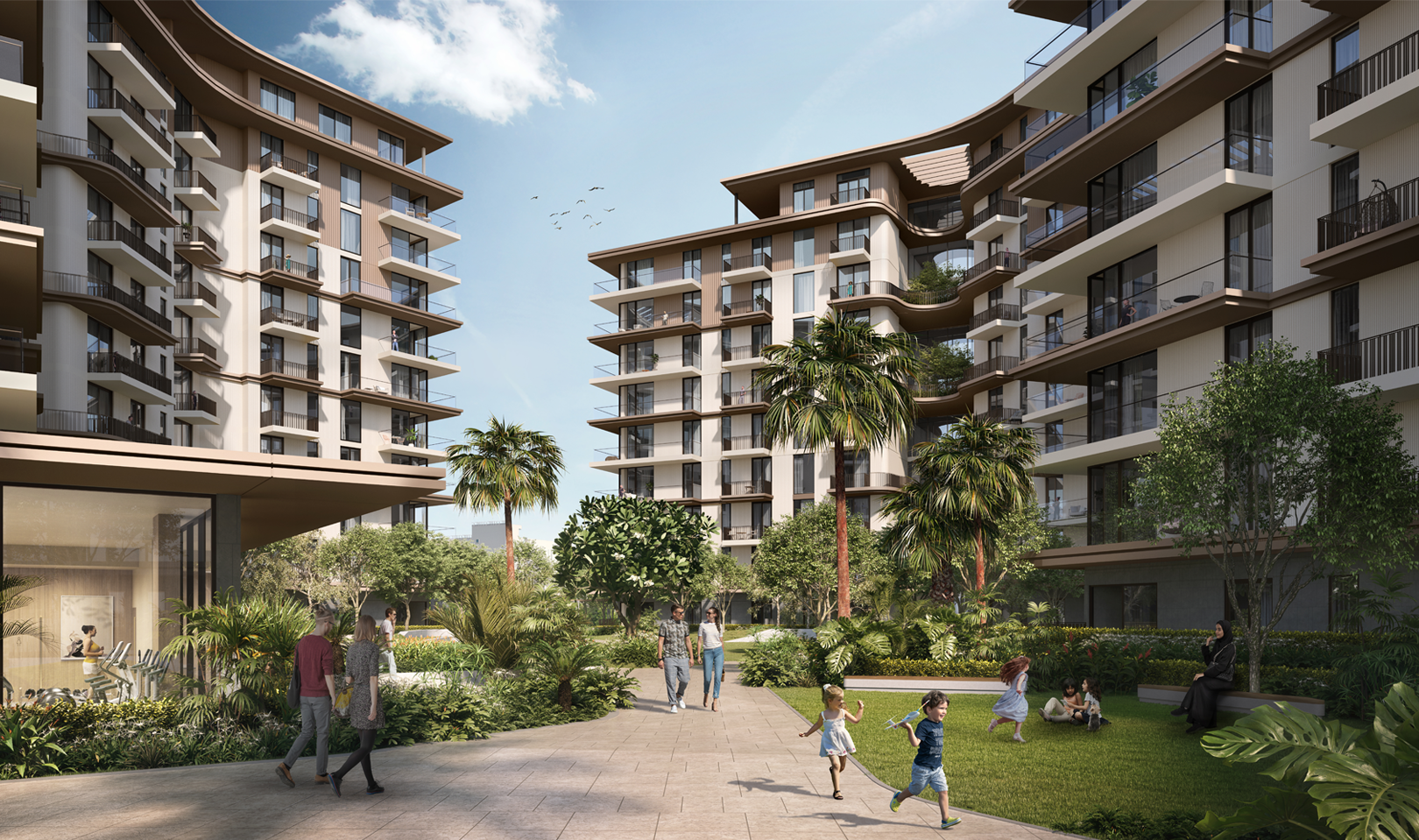 SCLA were appointed to deliver the full landscape design for The Elara Project which was part of the seventh phase of the now well established Madinat Jumeirah Living Project. The latter phases adopted a considerably more contemporary Architectural character to that of the earlier phases and our concept for the landscape was to create a nature rich scheme which felt like an extension of the adjacent park. A key design consideration was to blur the boundaries of the plot and use naturalistic mounding and planting to define the plot edges whilst considerably enhancing the residents experience and eliminating the requirement for boundary walls or fences. We wanted residents to feel like they have nature at their front door.