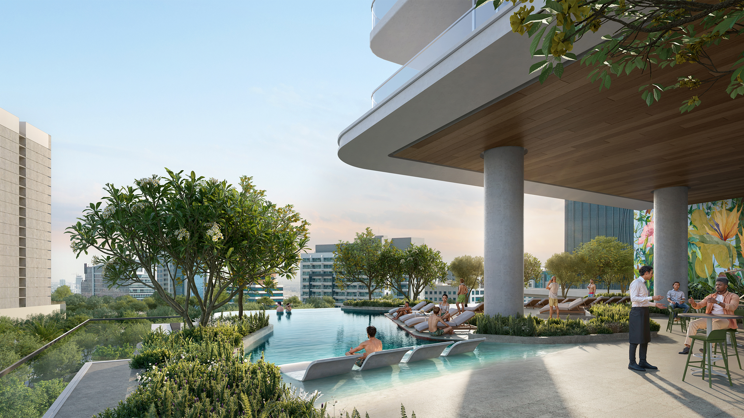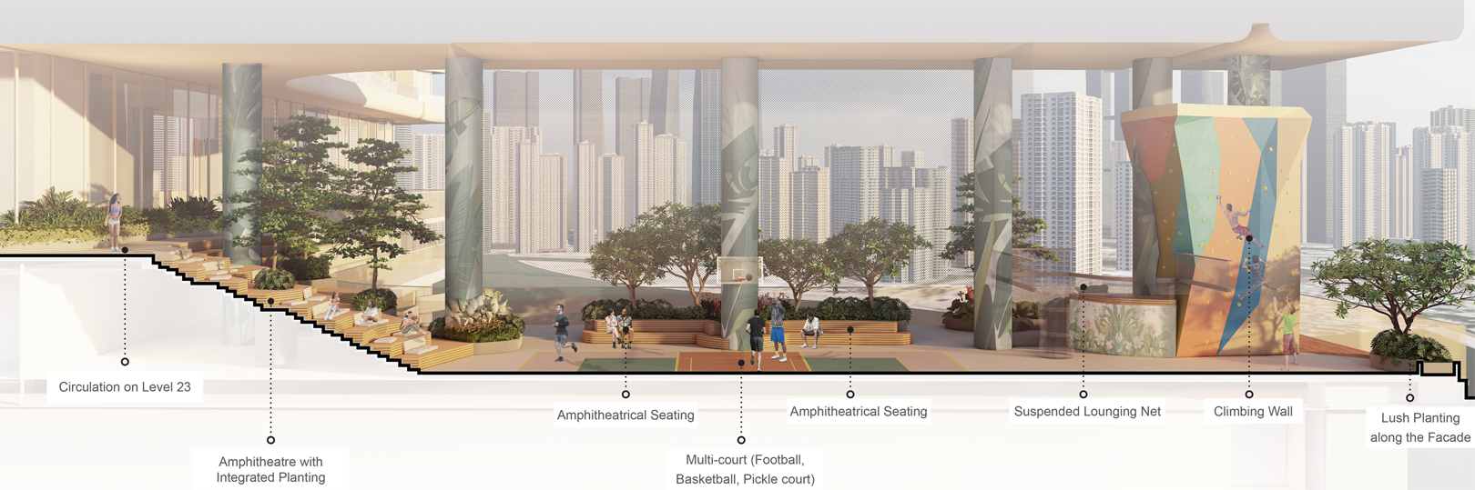 In addition to the amenity deck, landscape was also present on multiple upper levels with a series of intermediate level sky gardens leading to the community garden located on roof level. The community garden provided residents with 360 panoramic views of the Dubai skyline whilst offering amenities such as communal growing gardens, seating areas and F&B terraces.